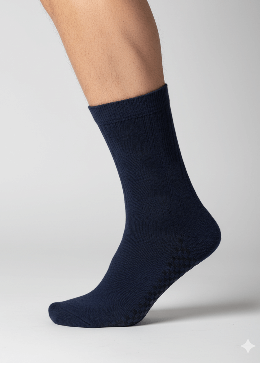 1/2 Caña de Algodón PEINADO natural hipoalergénico, Puño antideslizante con elastómero. Talón reforzado, Arco anatómico y Costuras planas en la puntera. Composición: 94% Algodón 6% Elastano