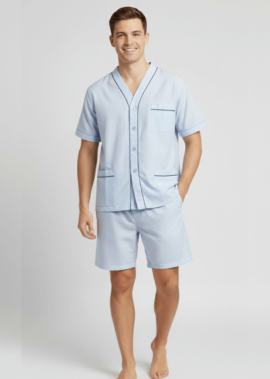 Pijama con botón manga corta, pantalón corto. Composición: 80% Algodón y 20% Poliéster