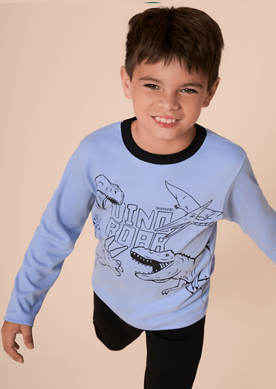 Pijama Juvenil Dinos – Buzo escote redondo / Pantalón con puños.